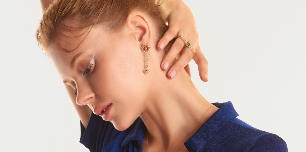 NZ $1,153.00from NZ $617 - Women's Earring Kalkuni 14ct Yellow Gold & White Sapphire & Ruby